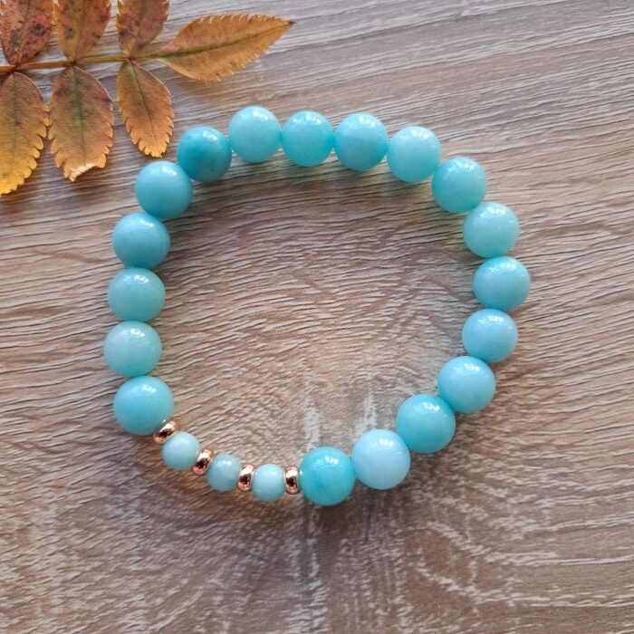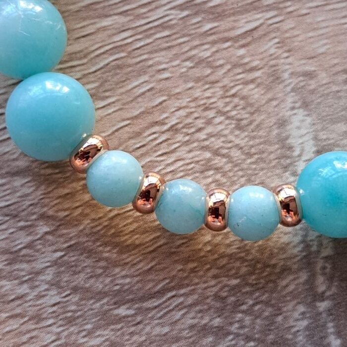 Käevõru on elastikpaelal, kasutatud on 6 mmm 8 mm ja 10 mm suuruseid ruudu amasoniit kivisid ning 5 mm x 3 mm suuruseid metallhelmeid (roosa kulla värvi).